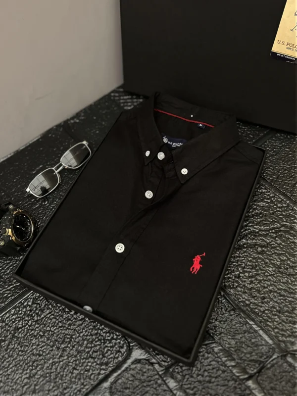 Polo Embroidered Logo on Chest Full Sleeve Casual Shirt in Black