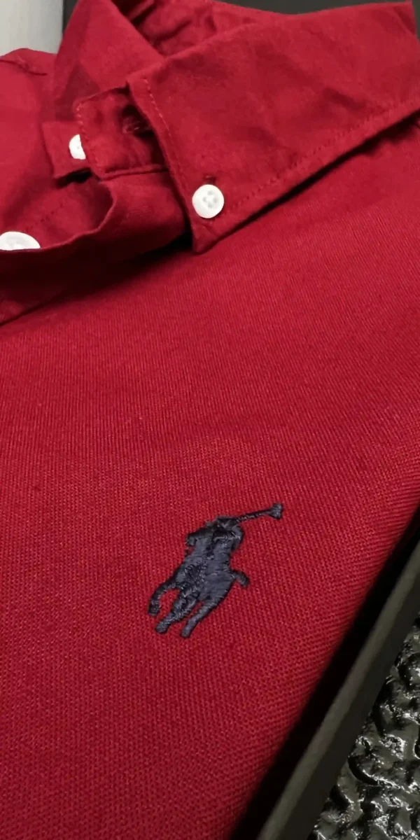 Polo Embroidered Logo on Chest Full Sleeve Casual Shirt in Maroon